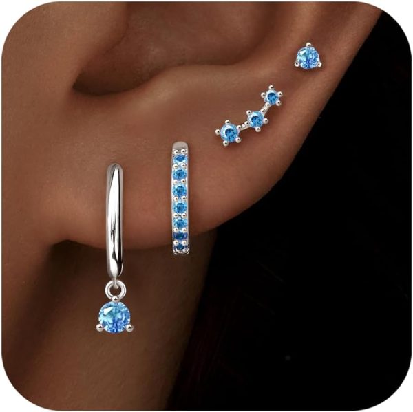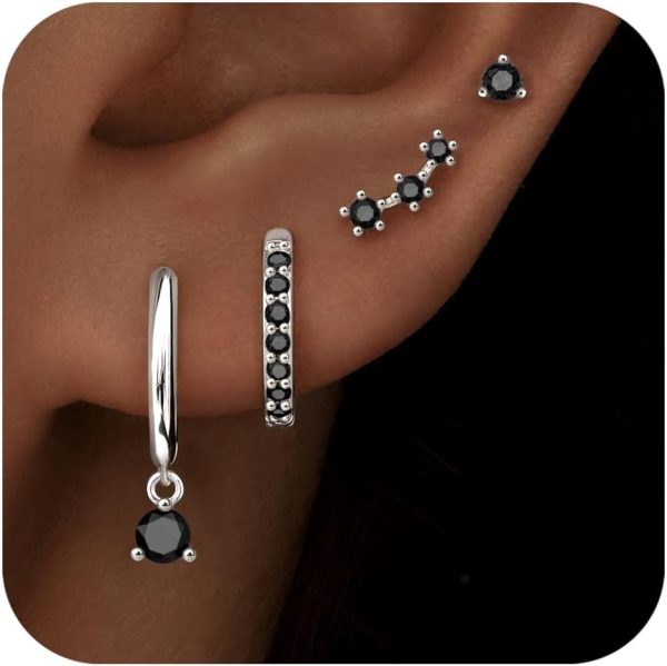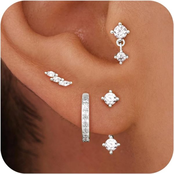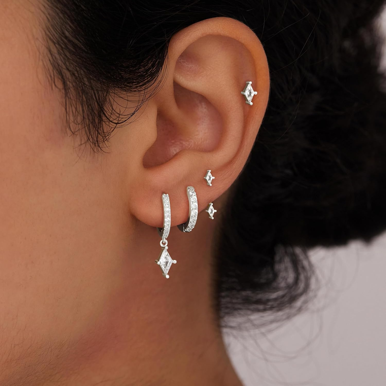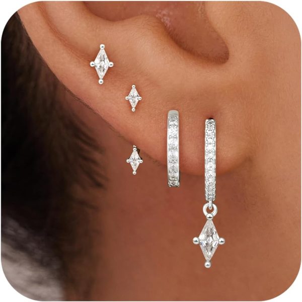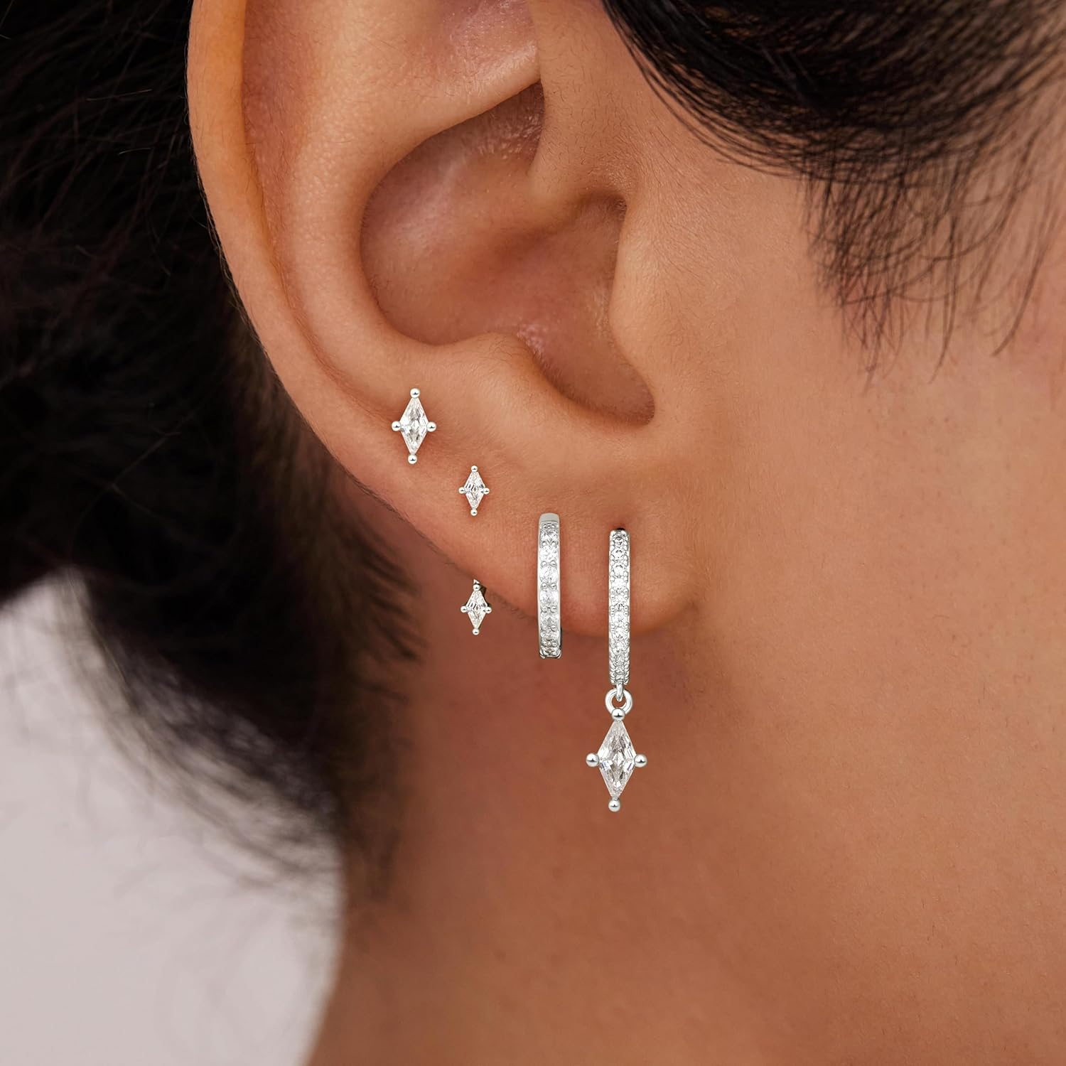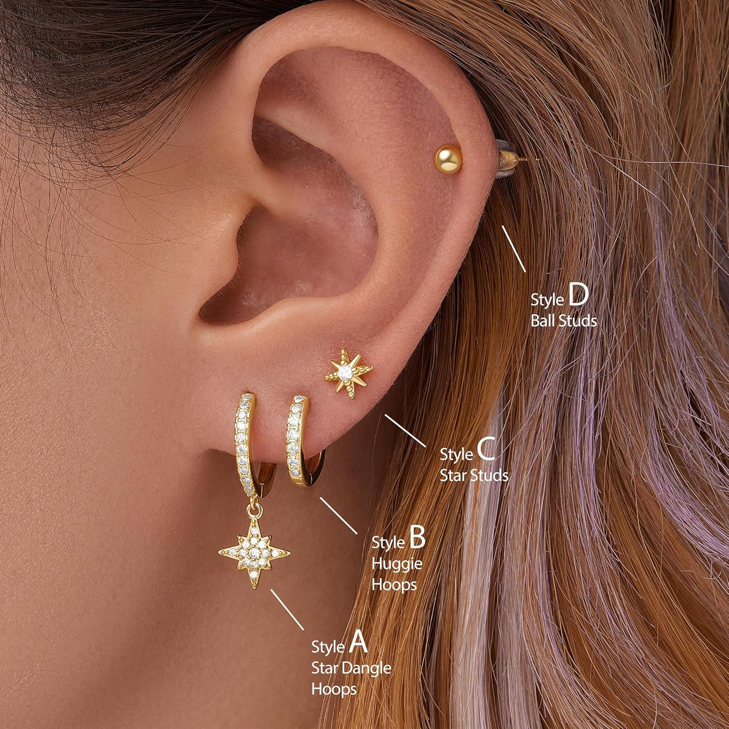 4 Pairs Stud Hoop Earrings Set for Women, Trendy Dangle Jacket Huggie Stacks for Multiple Piercing, Hypoallergenic Cartilage Jewelry Gifts