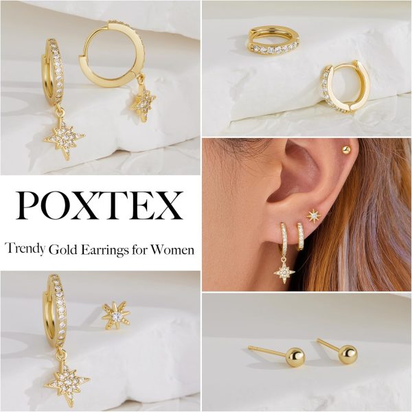 4 Pairs Gold Stud Hoop Earrings Set for Women, Trendy Dangle Jacket Huggie Earring Stacks for Multiple Piercing, Hypoallergenic Cartilage Jewelry Gifts