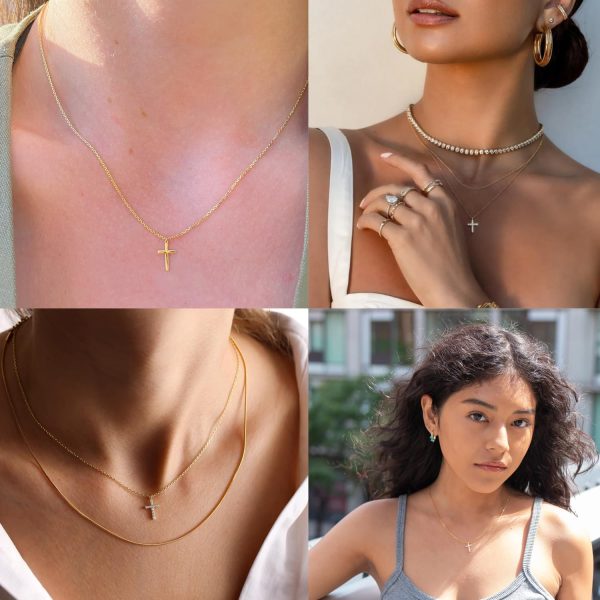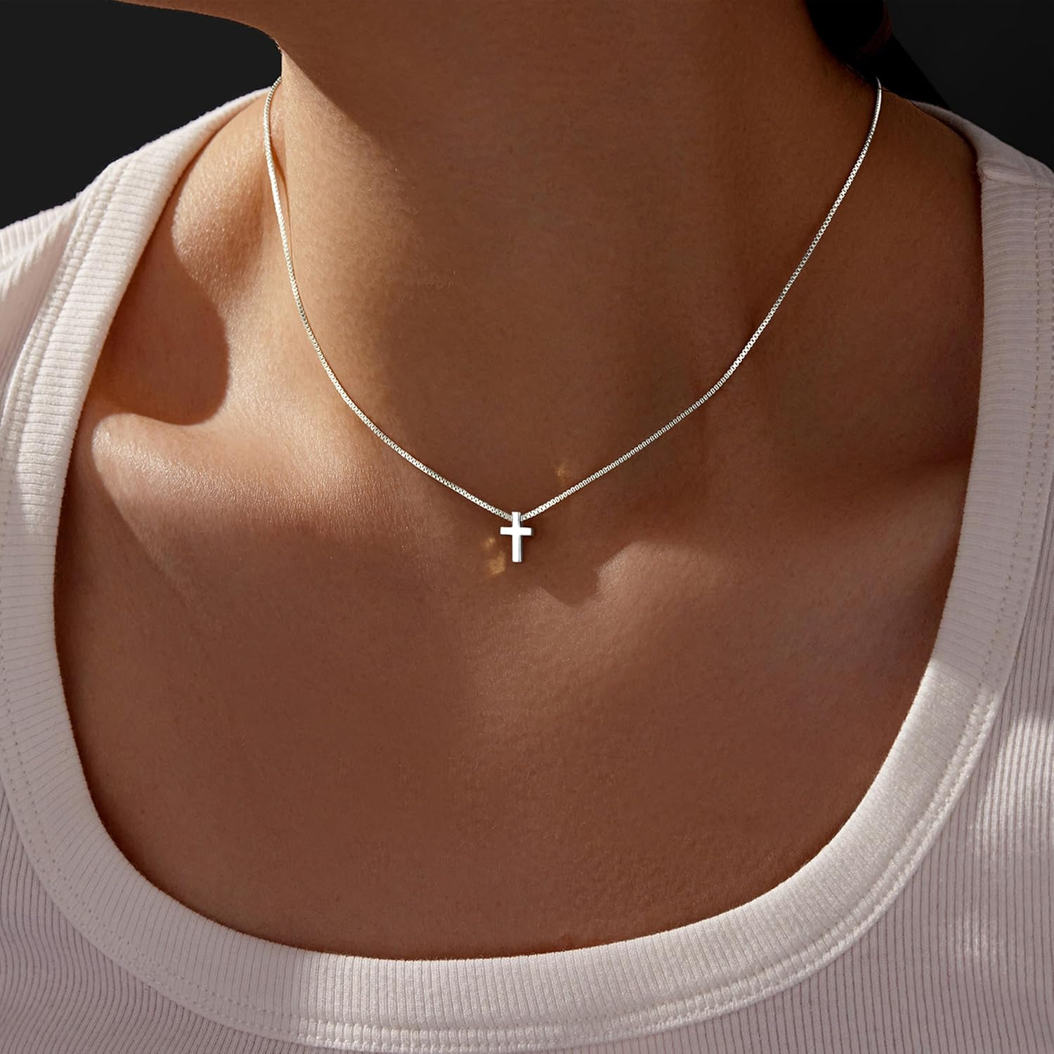 Cross Necklace for Women, Dainty14K Real Gold Silver Plated Cross Choker Pendant Jewelry Non Tarnish Waterproof Trendy Cute Simple Small Necklace Easter Christian Baptism Religious Faith Jewelry Gifts