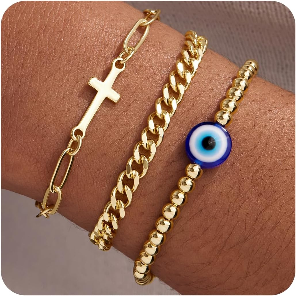 Gold Bracelets for Women,Dainty Bracelets Set for Women Trendy, Gold Bracelets Stack With Beaded, Cuban, Paperclip, Heart, Snake, Rope, Pearl, Cross, Hand Chain, Silver Jewelry Gifts for Women Mom