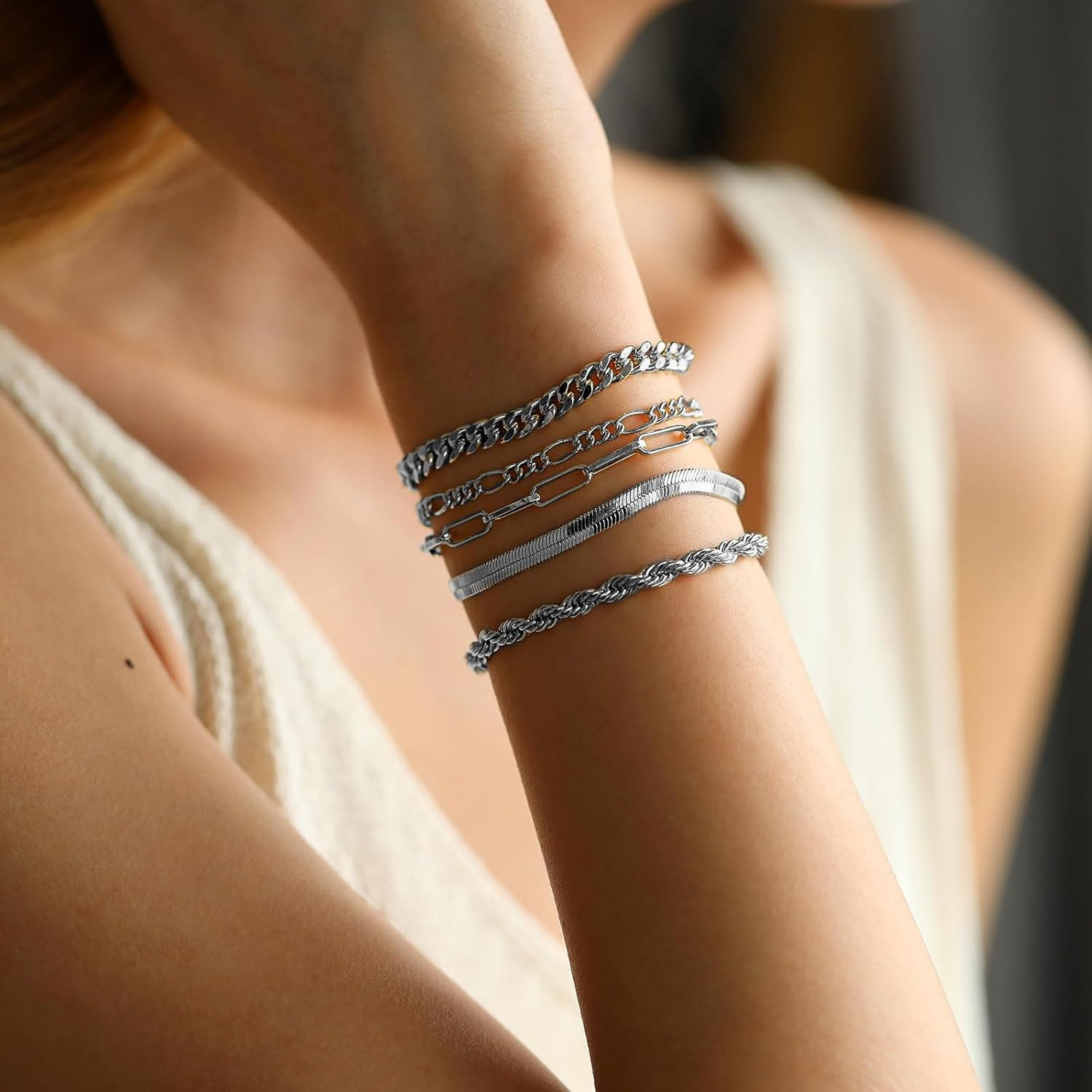 Gold Bracelets for Women,Dainty Bracelets Set for Women Trendy, Gold Bracelets Stack With Beaded, Cuban, Paperclip, Heart, Snake, Rope, Pearl, Cross, Hand Chain, Silver Jewelry Gifts for Women Christmas