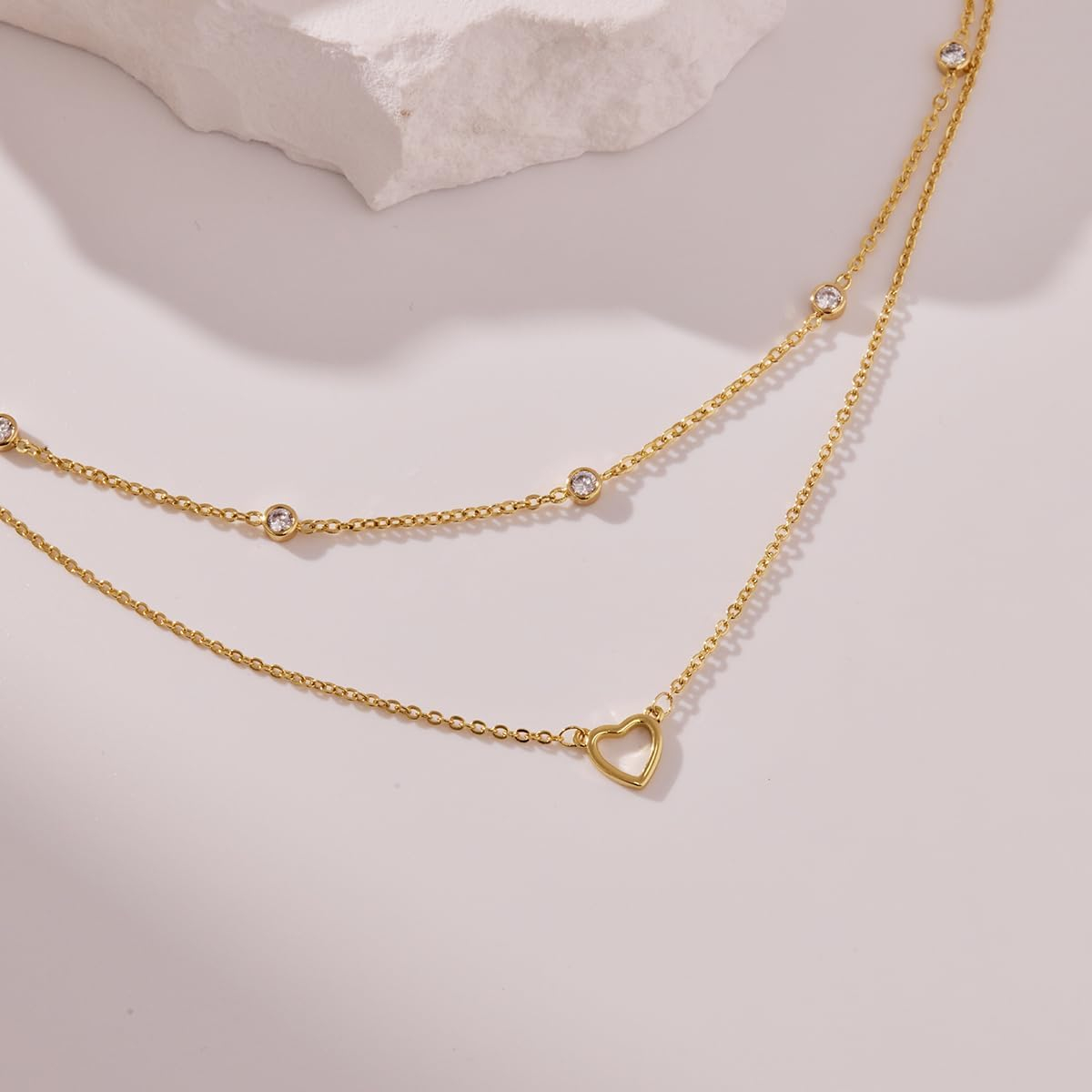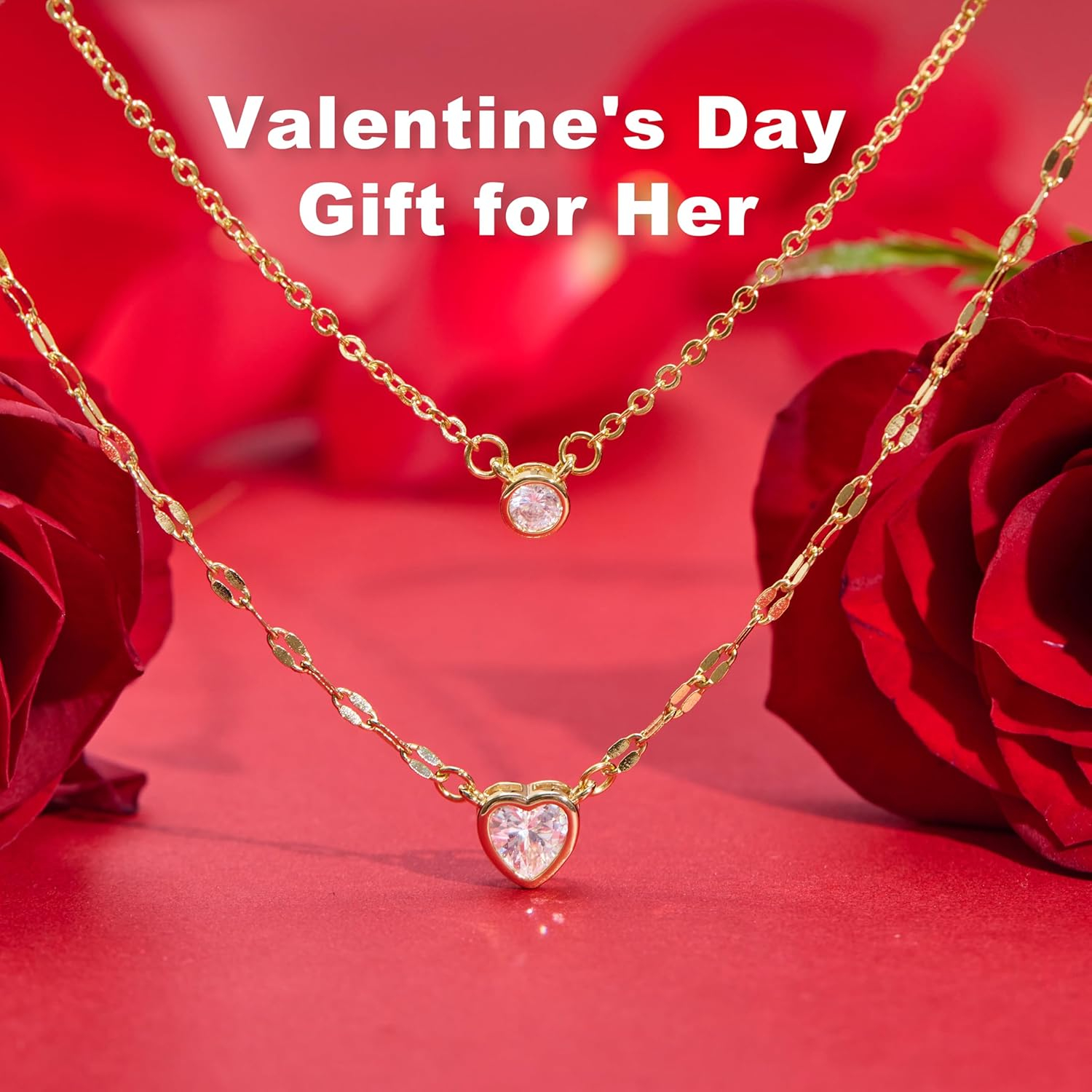 Heart Necklaces for Women, Dainty 14K Gold/Silver Plated Necklace Cute Tiny Gold Diamond Infiniy Heart Pendant Jewelry, Ideal Gifts for Mothers Day Valentines Day Birthday Christmas Graduation